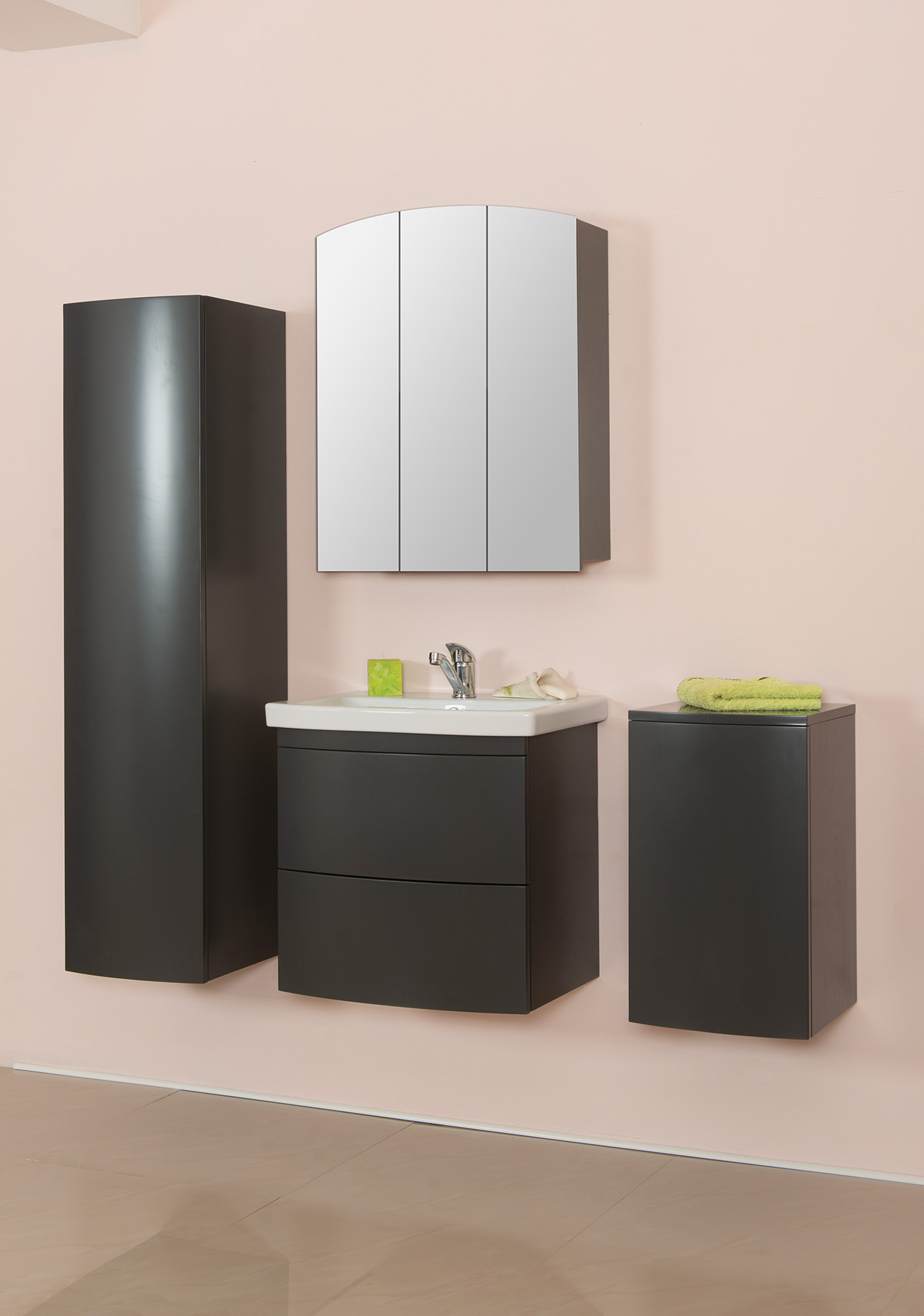 Kupatilski nameštaj je danas skoro neizostavni deo svakog moderno uređenog kupatila. Naši pojedini modeli poseduju ugrađene umivaonike, a određeni modeli imaju posebnu horizontalnu ploču na koju se postavljaju nadgradni modeli umivaonika. Ovaj segment našeg asortimana je pod okriljem sopstvenog brenda, sa proizvodnjom u Srbiji.