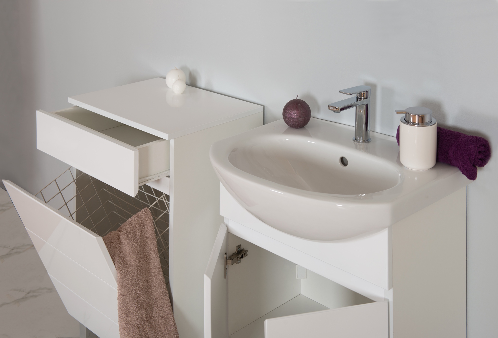 Naša dva modela u klasičnoj beloj boji predstavljaju pravi izbor za ljubitelje jednostavnog, ali prefinjenog dizajna. Bela boja simbolizuje čistoću i svetlost, pa su ovi komadi idealni za stvaranje vizuelno prostranijih i svetlijih kupatila. Sa minimalističkim linijama, ovi modeli se lako kombinuju sa svim vrstama keramičkih pločica, posebno sa onima u neutralnim tonovima ili diskretnim uzorcima.